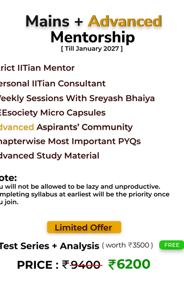 Thanks for asking. We believe in providing the best value for money. Please don't worry about the value. JEEsociety will make sure that you reach your highest potential under your IITian mentor in our program.