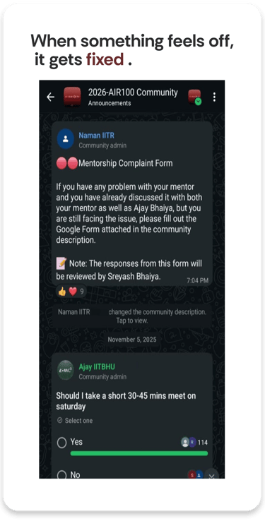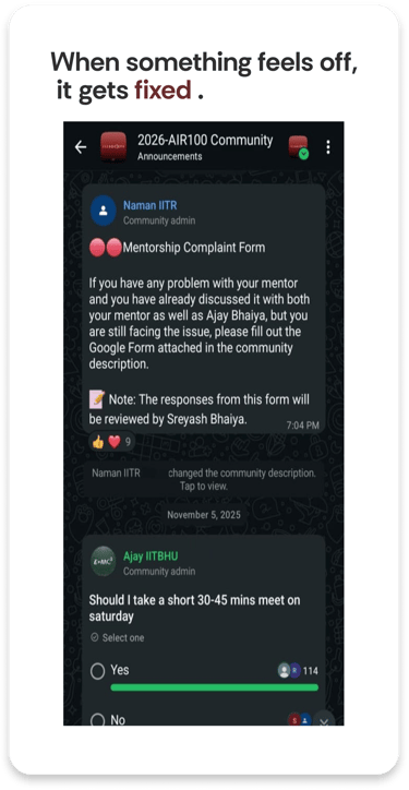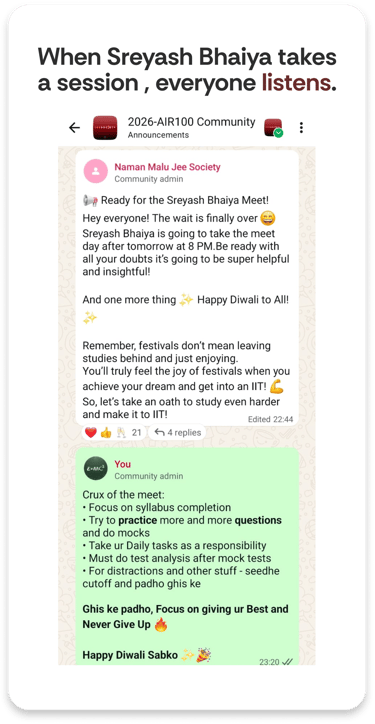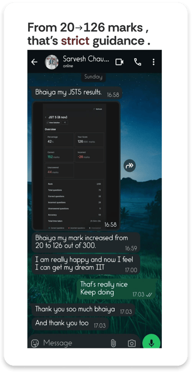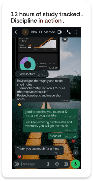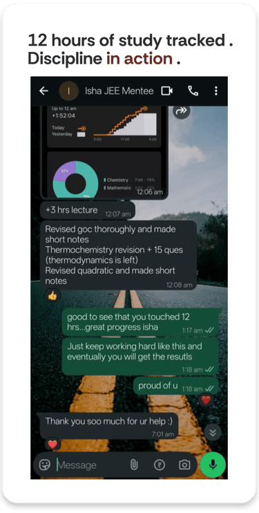 Over 70% of our students manage school and coaching. The IITian mentor teaches you to manage your existing load effortlessly and stay ahead, while also clearing backlogs.